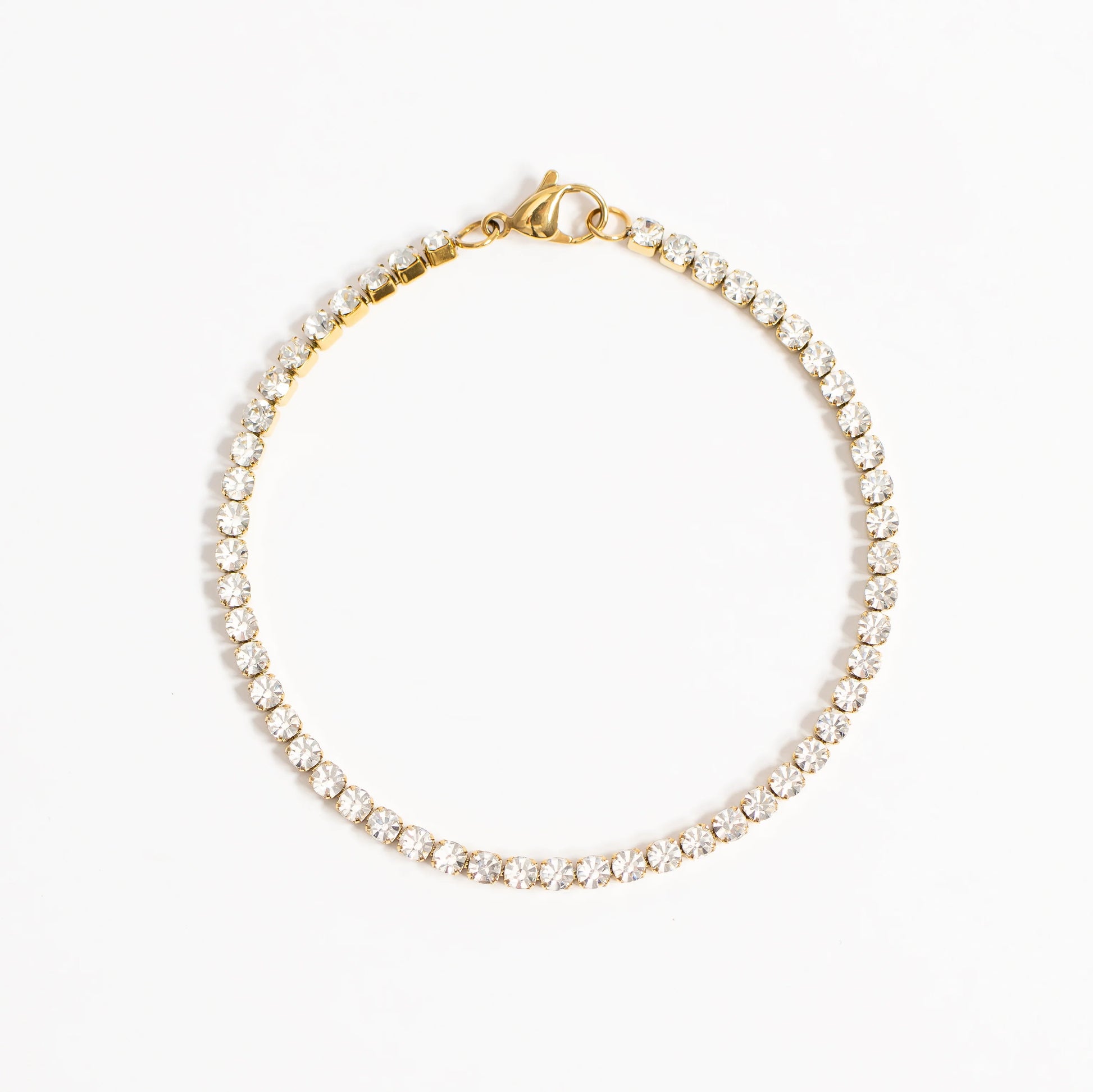 Introducing the Cubic Zirconia Tennis Bracelet! This elegant bracelet features a line of sparkling cubic zirconia stones in a gold-PVD Coated brass or stainless steel setting. The lobster-claw closure will ensure a secure fit for comfortable everyday wear. So whether you pair this bold piece with an ensemble from business casual to a night on the town, this bracelet is sure to add a radiant glow to your style! Size is 5mm and 8" long.