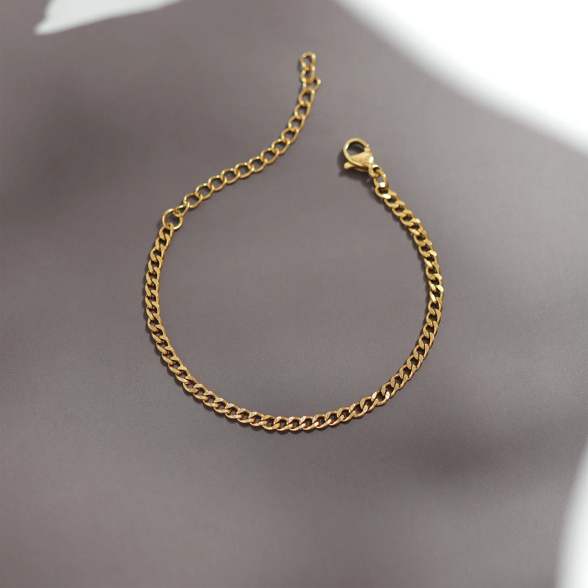 The curb chain is the ultimate classic chain bracelet! Featuring a traditional diamond cut curb chain design, this bracelet is adaptable for any jewelry collection as a year long staple to your brand. Available in a variety of lengths and widths, this versatile chain style can fit seamlessly into your current collection fit to your customer base. Made with our hypoallergenic, non-tarnish 18K Gold PVD coated stainless steel, the curb chain is perfect for every day wear that your customers can cherish for years to come!