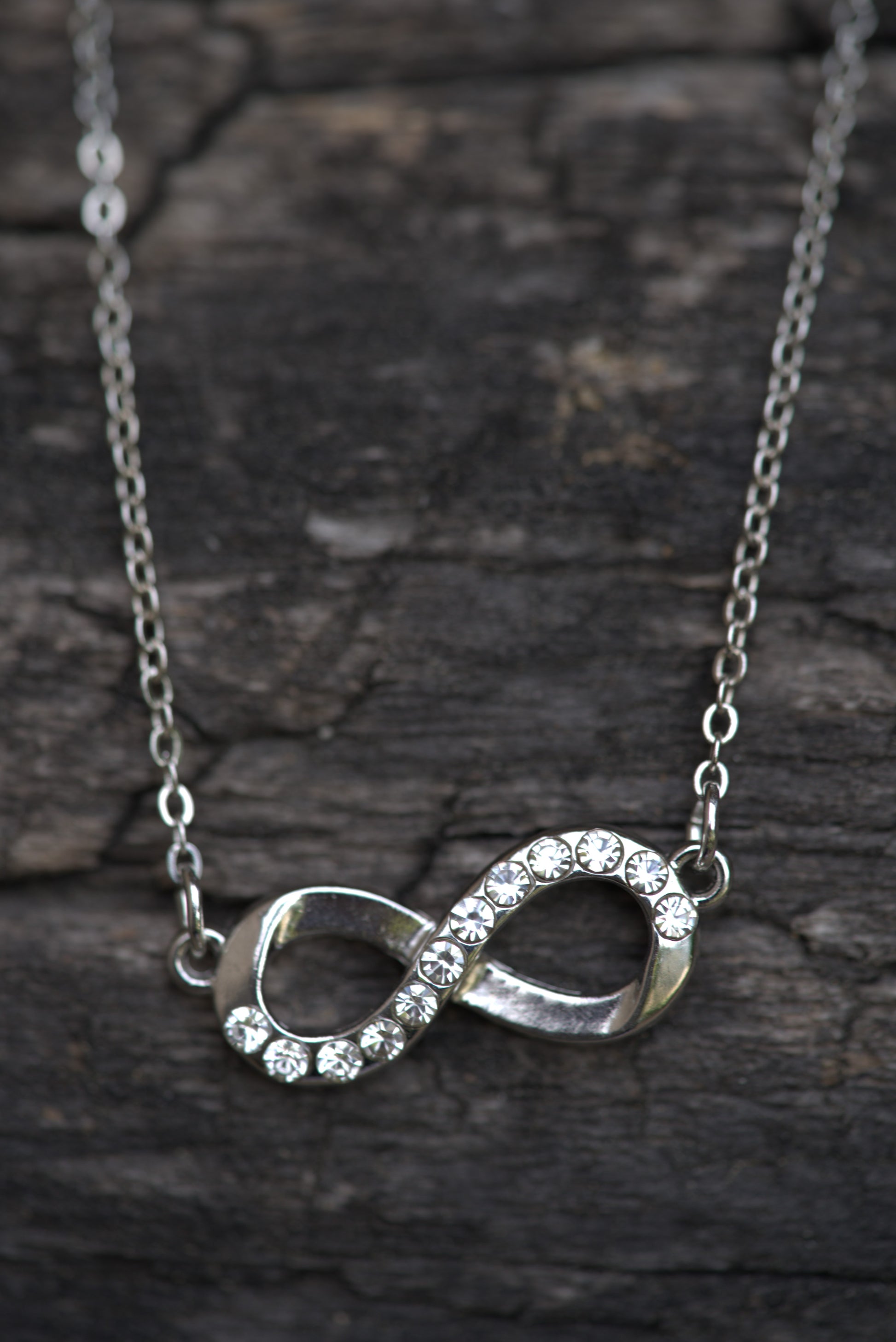 Stainless Steel Infinity Necklace with Crystal Accents