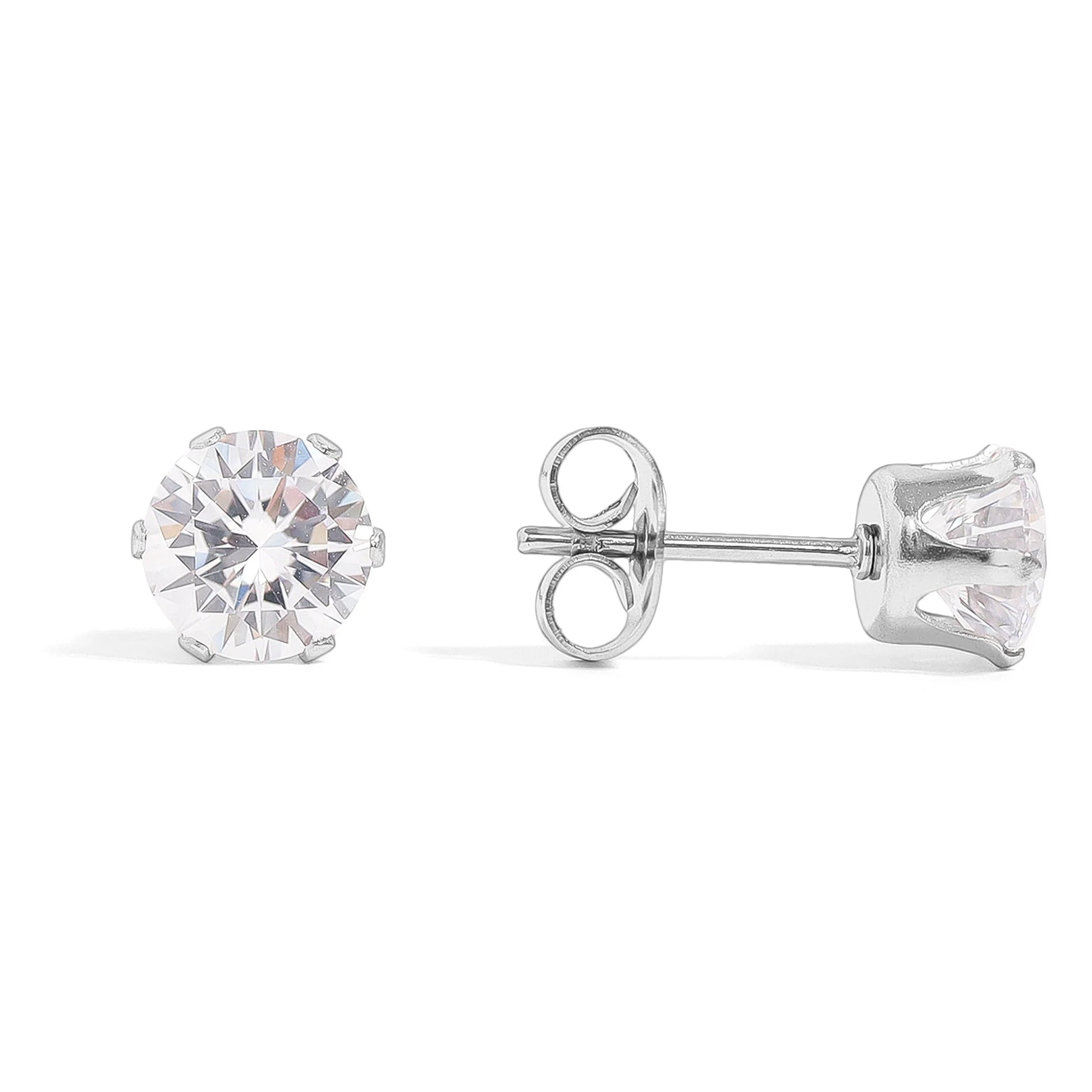 Stainless Steel Round CZ Stud Earrings
